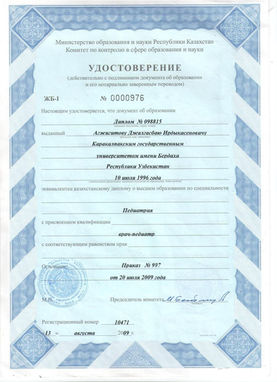 *1990-1996 -Ташкенский Медицинский Институт